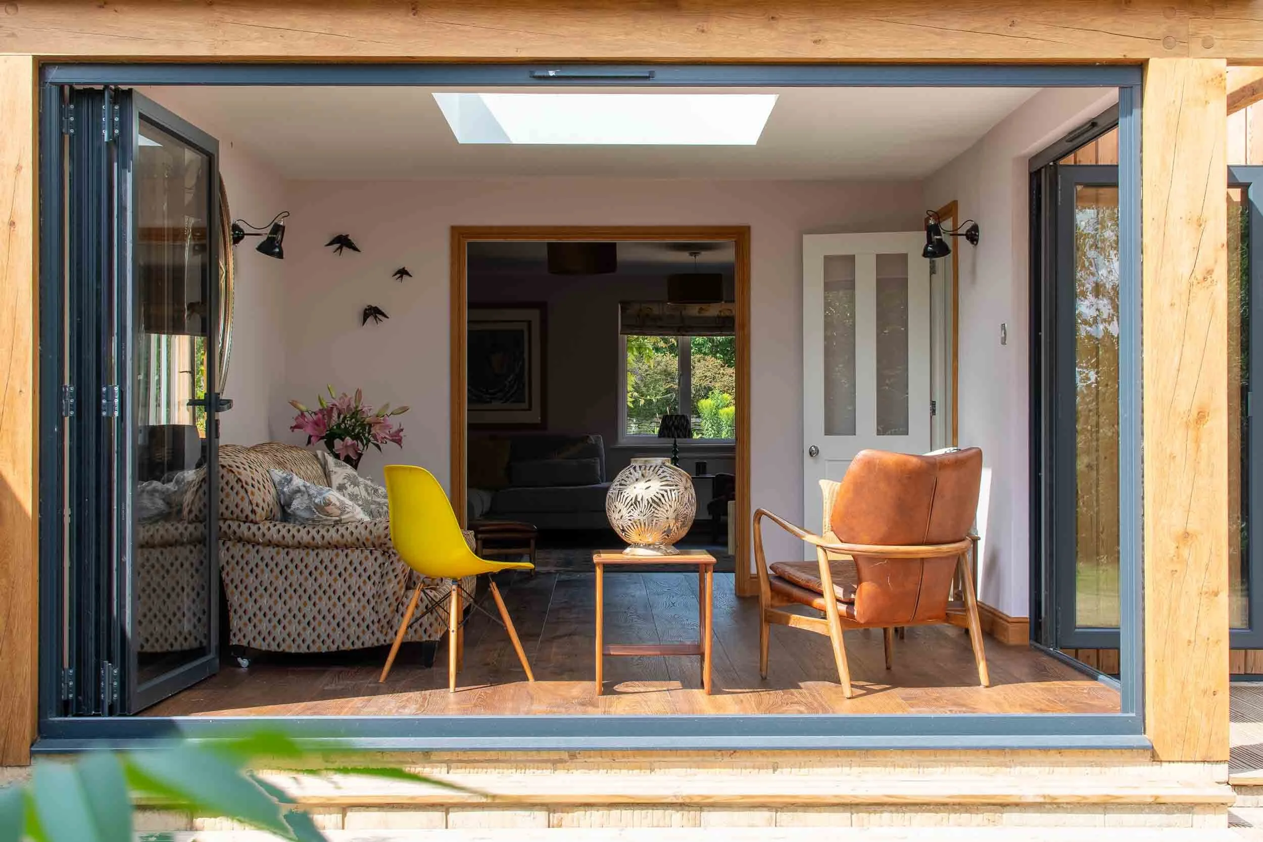 New garden room/ living space with bifold doors and central skylight providing plenty of natural light.